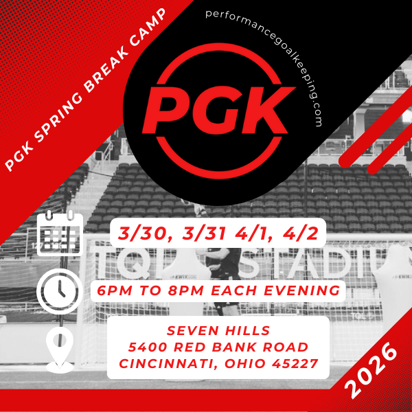 PGK Goalkeeping programs and camps are directed and coached by current FC Cincinnati Head of Goalkeeping/1st Team GK Coach Paul Rogers, FC Cincinnati 2nd Team GK Coach Ryan Coulter, FC Cincinnati Academy GK coaches Alex Fetterly & Fionn Deehan, plus additional qualified college GK coaches.